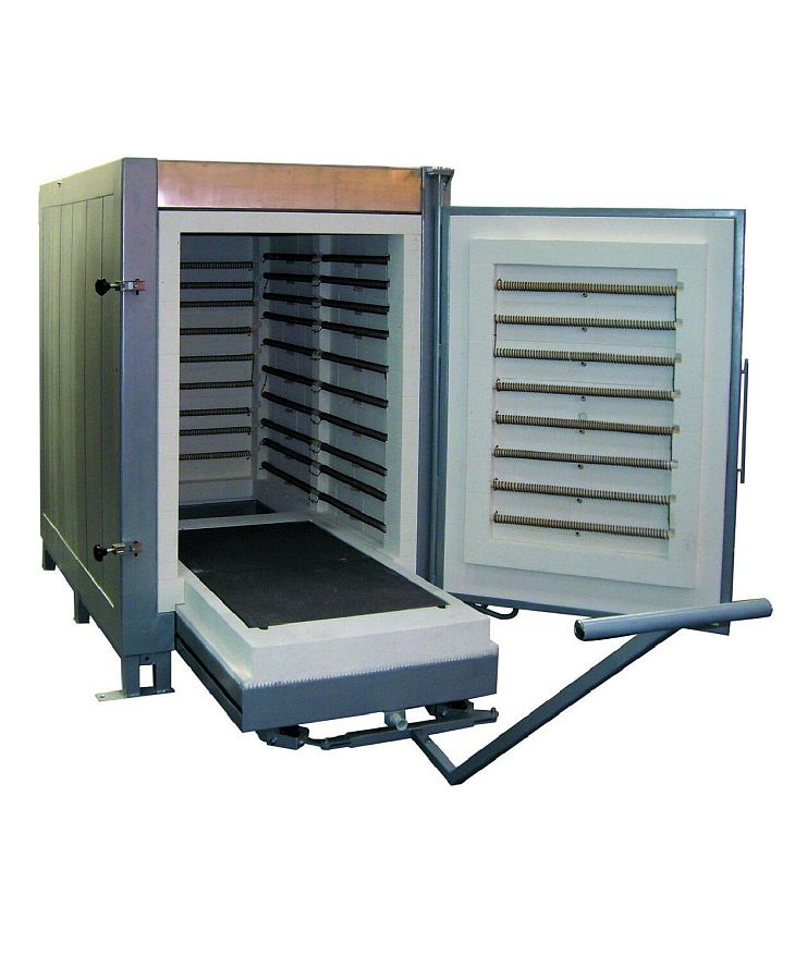 - Промышленная печь с выдвижным подом выкатным СНОЛ 500/12-ВП 42 кВт до 1250 С' 665х1170х640 мм огнеупоры огнеупоры